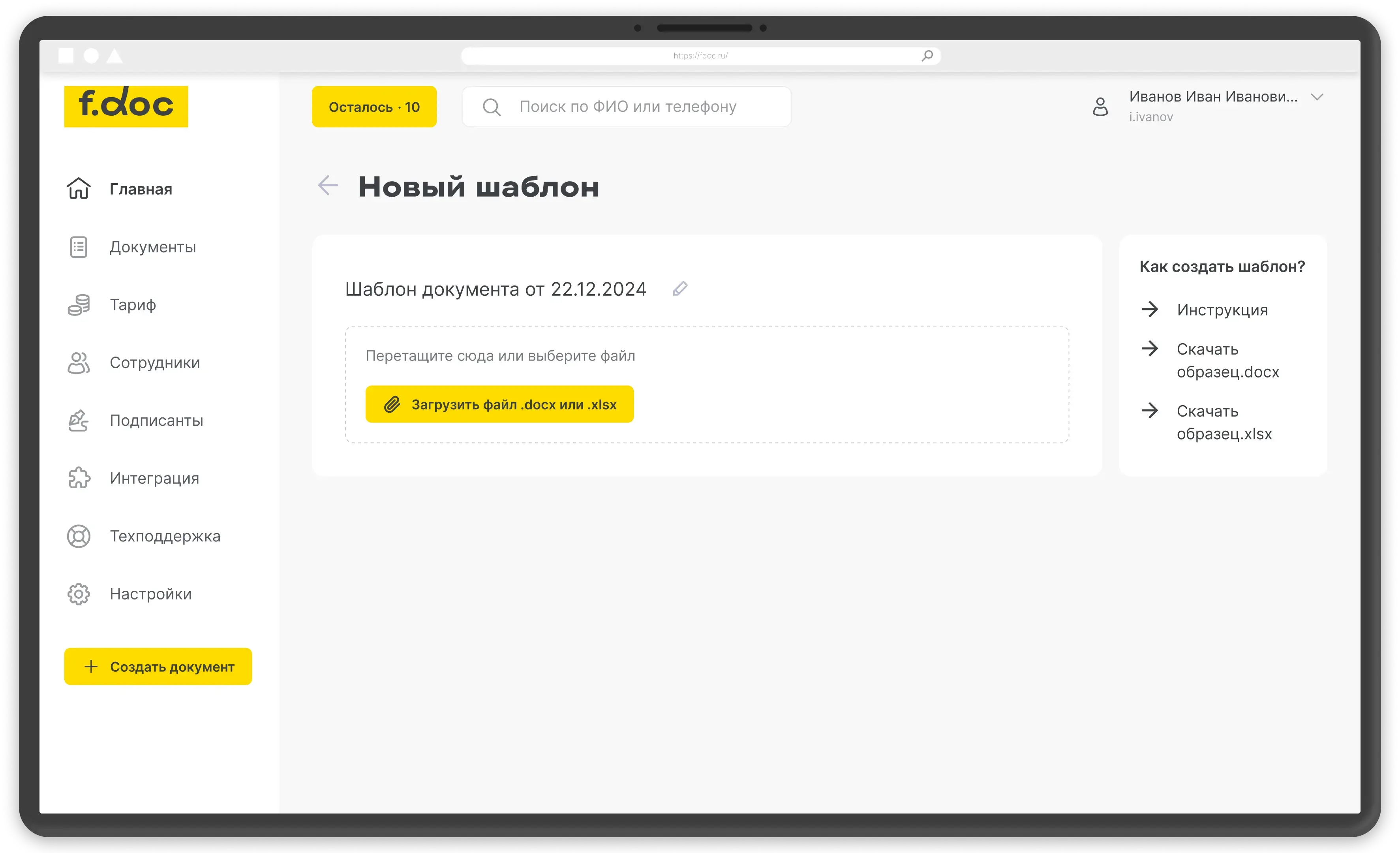 - Чтобы подключиться, нужно оставить заявку. Менеджеры F.Doc подробно расскажут об условиях, а после подписания договора пришлют ссылку на регистрацию сотрудников и ключ доступа. Пожалуй, это самый быстрый способ перейти на электронный документооборот.