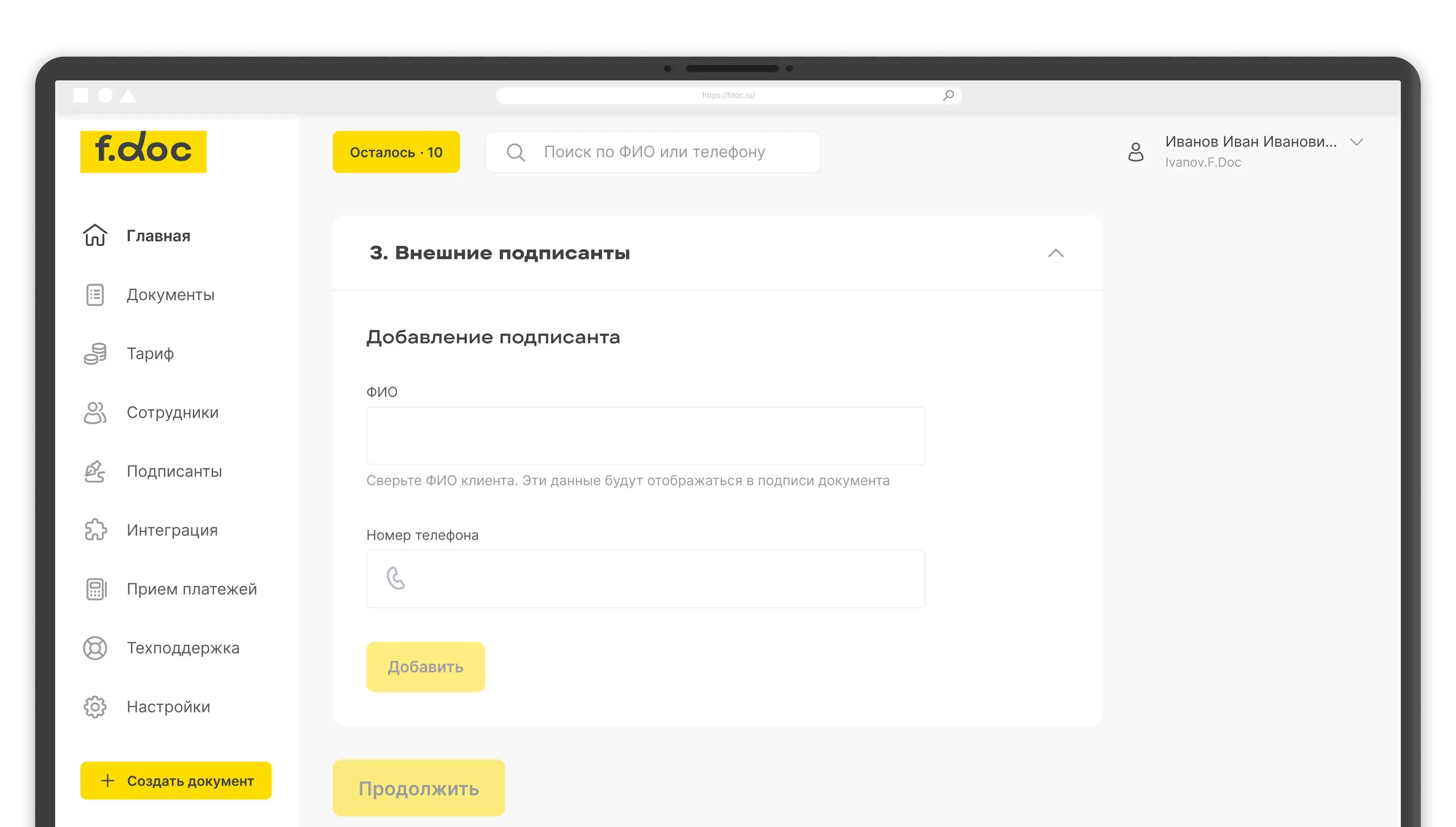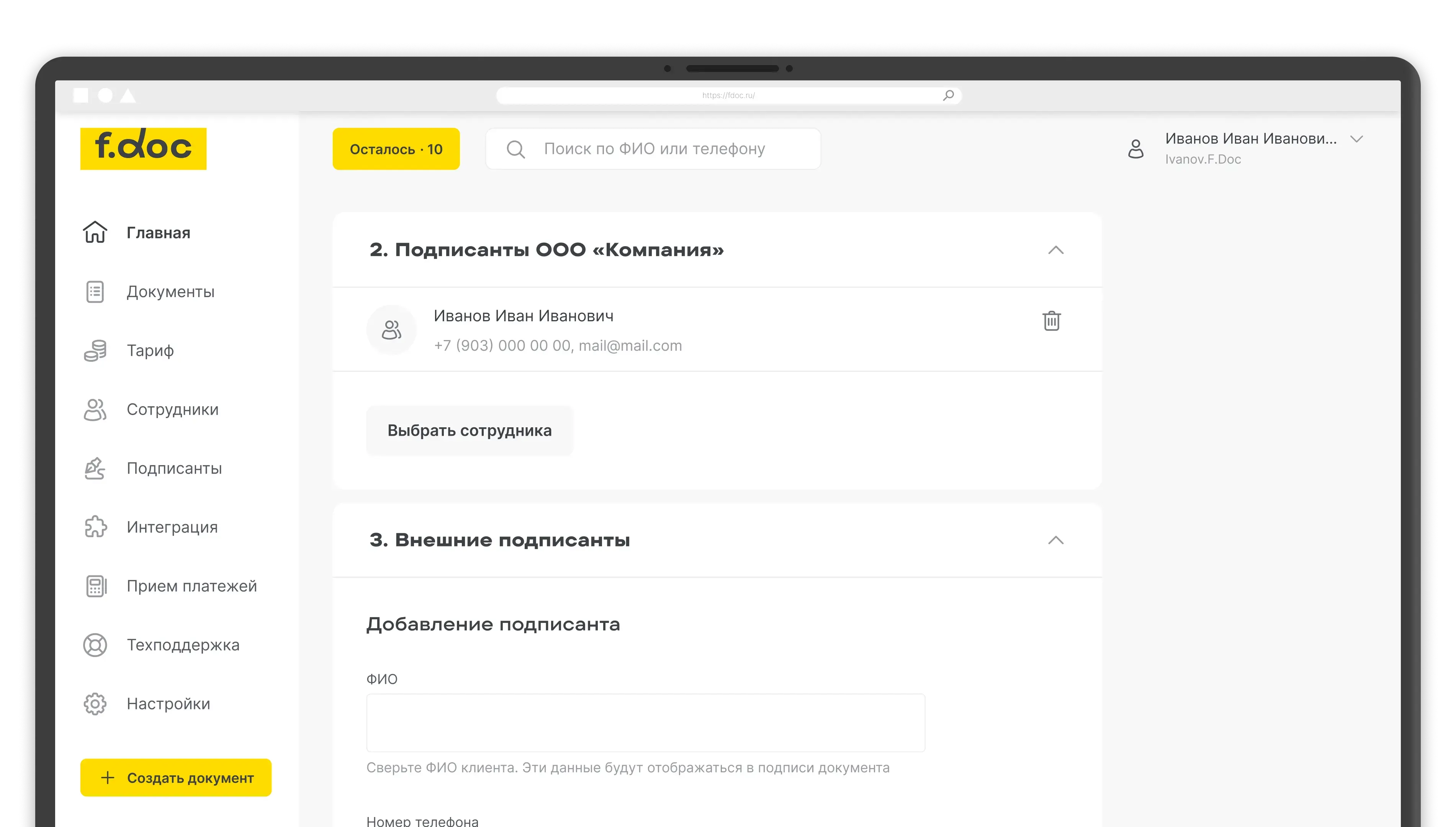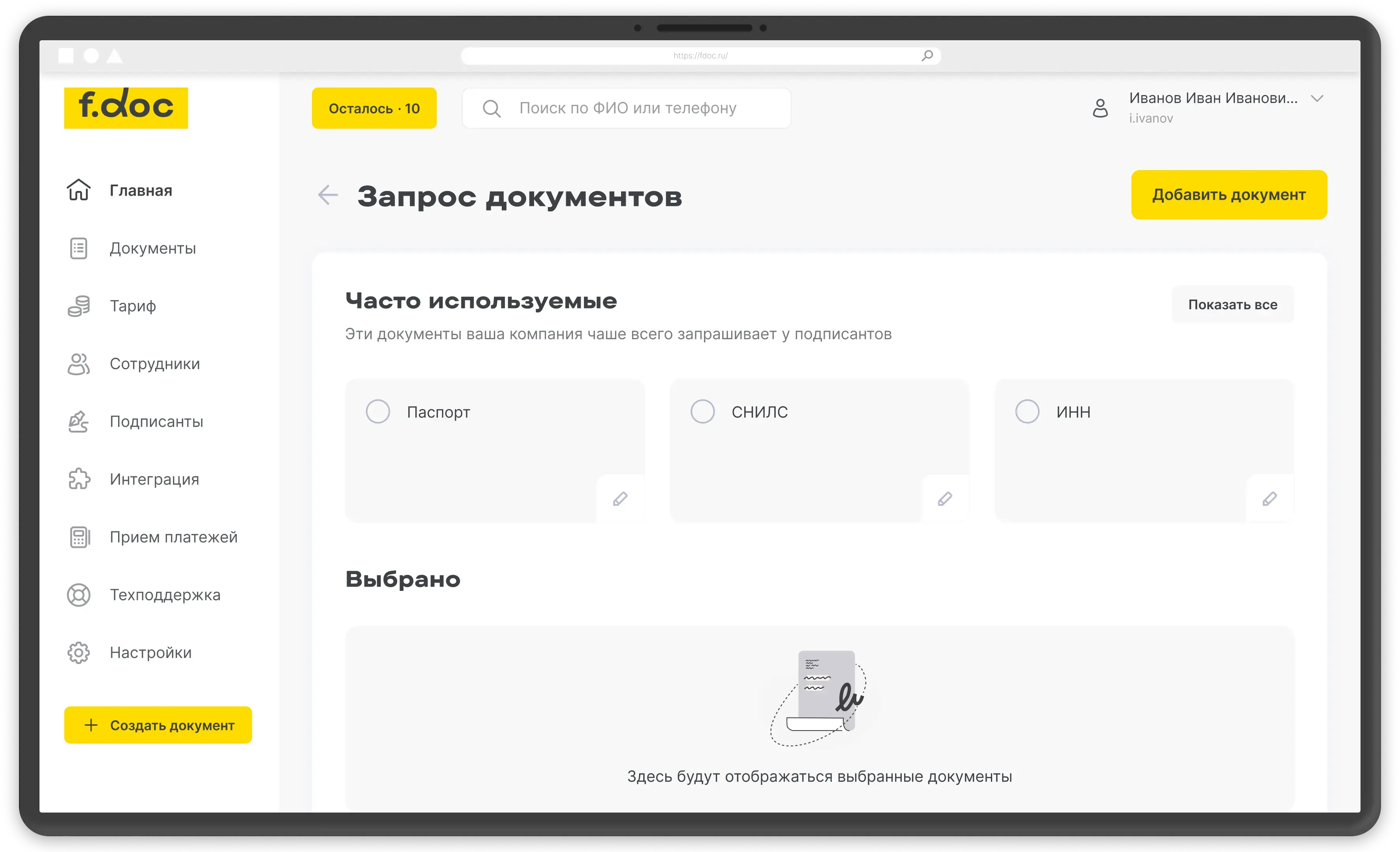 Есть несколько способов работать с F.Doc. И, пожалуй, самый простой — это личный кабинет. Чтобы начать им пользоваться, не нужны сложные интеграции — документы отправляют на подпись через браузер.