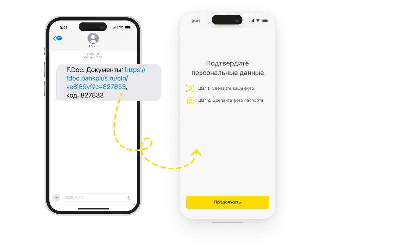 2. Клиент получает СМС со ссылкой на электронный документ. Однако доступ к нему ограничен до тех пор, пока клиент не пройдет процедуру верификации.